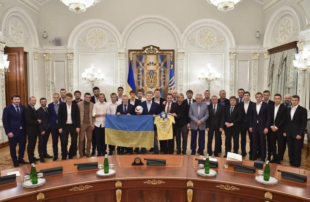 "Последняя игра со Словенией в Мариборе была настоящим боем. За этой игрой следил весь футбольный мир. Вы хотели не просто победить в этом матче, а отстоять честь Украины и высоко над головой поднять наш государственный флаг. Ребята, Вам это удалось", - рассказывает Президент.