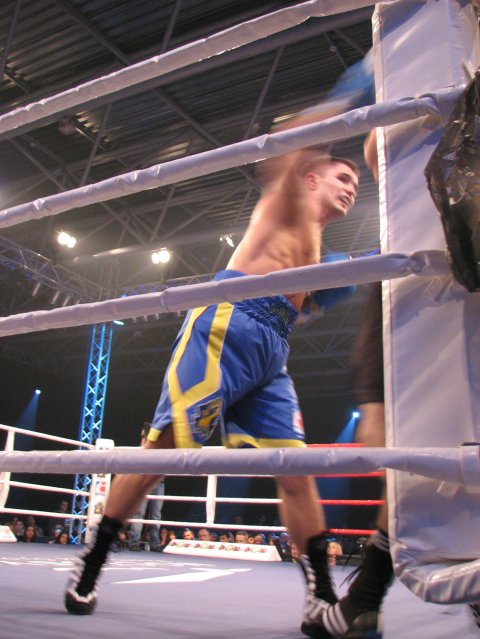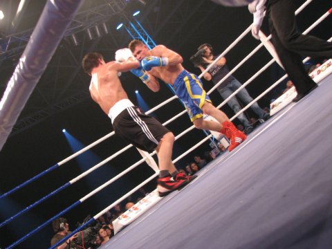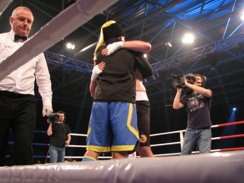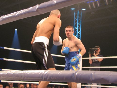 Равные. Четвертый бой получился самым нервным. На ринг вышли равные соперники и оба были настроены на победу. В начале матча даже создалось впечатление, чтоб бой пройдет в одну калитку, на столько велик был натиск Ксхека Паскали. В первом же раунде Денис Пояцика умудрился пропустить целый град ударов и даже побывать на полу. Подобные действия только раззадорили украинца и он начал сыпать ударом направо и налево. Но и Паскали не так легко было испугать. На протяжении всего поединка оба боксера усердно работали, стараясь перетянуть на свою сторону удачу и судейские симпатии. Обаятельнее оказался Денис Пояцика. Ура, Денис!