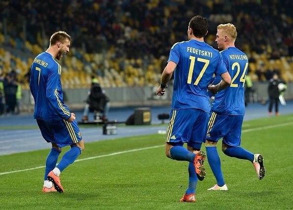 Украина: Пятов, Кучер, Федецкий, Шевчук, Хачериди, Коваленко, Гармаш, Ротань, Степаненко, Ярмоленко, Зозуля
