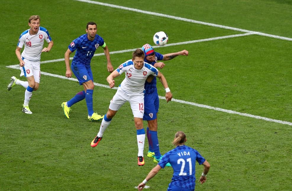 В отличие от сборной Турции, которая в первом туре по всем статьям проиграла Хорватии, чехи старались не позволять "клетчатым" слишком многого на подступах к своим владениям. Номинальные хозяева старались играть плотно и навязывать борьбу мастеровитым полузащитникам соперника, при этом на регулярно основе наведывались на чужую половину. Именно после одной из таких вылазок Чехия едва не пропустила: парни Чачича убежали в быструю контратаку через левый фланг, последовал прострел в центр штрафной, где Перишичу совсем немного не хватило, чтобы дотянуться до мяча и отправить его в сетку.