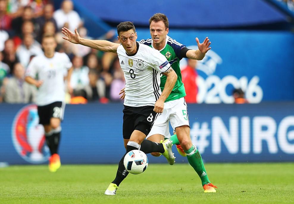 Номинальные гости начали это противостояния очень уверенно, сразу же захватив контроль над центром поля, владея игровым и территориальным преимуществом. Но и футболисты из Северной Ирландии не стали полностью "запираться" в своей штрафной, периодически убегая в перспективные контратаки. Но немцы доминировали, и подопечные Йоахима Лёва должны были открывать счёт в матче уже на восьмой минуте встречи. Атака Бундестим оказалась столь изящной, что впору было поаплодировать: мы не видели от Манншафт подобного со времён поединка против бразильцев двухлетней давности. Месут Озил выдал совершенно блестящую передачу в касание на Томаса Мюллера в чужую штрафную, однако игрок "Баварии" умудрился попасть из района одиннадцатиметровой отметки точно в упавшего Макговерна. В ответной атаке Вашингтон едва не вырвался а подходящую для удара позицию, однако в конечном итоге был остановлен прекрасно сыгравшим Хуммельсом.