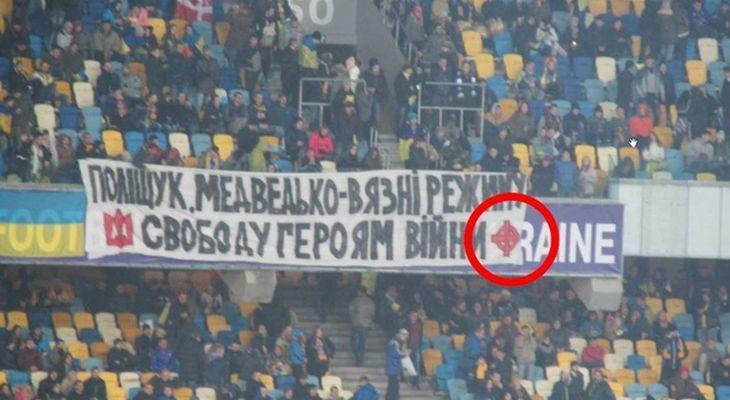 УЕФА, в свою очередь, применяет санкции к Украине из-за кельтского креста на баннере болельщиков.