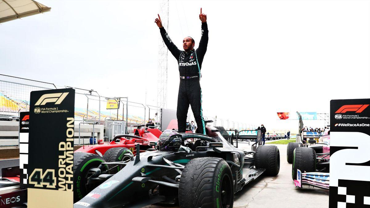 Это уже седьмое чемпионство для Льюиса Хэмилтона, по этому показателю он сравнялся с легендарным немецким гонщиком Михаэлем Шумахером .