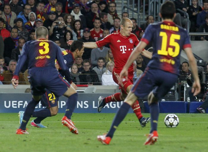 Первый полуфинальный матч этого розыгрыша Лиги чемпионов болельщики "Баварии" и "Барселоны" запомнят на долгие годы. Каталонский клуб, мечтавший о выходе в финале, получил четыре нокаутирующих удара от немецкой машины из Мюнхена. Все прекрасно знали, что "Бавария" в этом сезоне сильна, причем сильна настолько, что обеспечила себе чемпионский титул задолго до окончания первенства. Теперь же все силы команды Юппа Хайнкеса были брошены на Лигу чемпионов, и уже по матчам против "Ювентуса" стало понятно, что уровень игры "Баварии" высок даже на фоне других европейских грандов. "Барселона", воспринимаемая многими как лучшая команда Европы, на деле не сумела противопоставить "Баварии" ничего. Немцы задавали каталонцев своей мощью и до автоматизма надёжной командной игрой, против которой у "Барселоны" не было ни единого контраргумента. Как результат – 0:4 на "Алльянц-Арене" и практически нулевые шансы на выход в финал.
