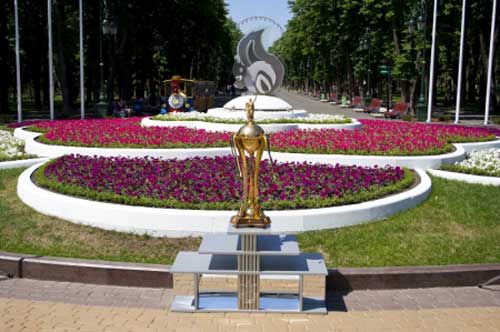 Второй по значимости трофей украинского футбола уже находится в Харькове. Он выставлен на всеобщее обозрение в центральном парке культуры и отдыха имени Максима Горького. Для Кубка Украины у главного входа в парк изготовлен специальный пьедестал.