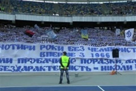 Кроме того, ультрас "Динамо" вывесили баннер с обращением к футболистам: "Четыре года без чемпионства. Впервые с 1966 года. Мы простим поражения, но бесхарактерность - никогда".