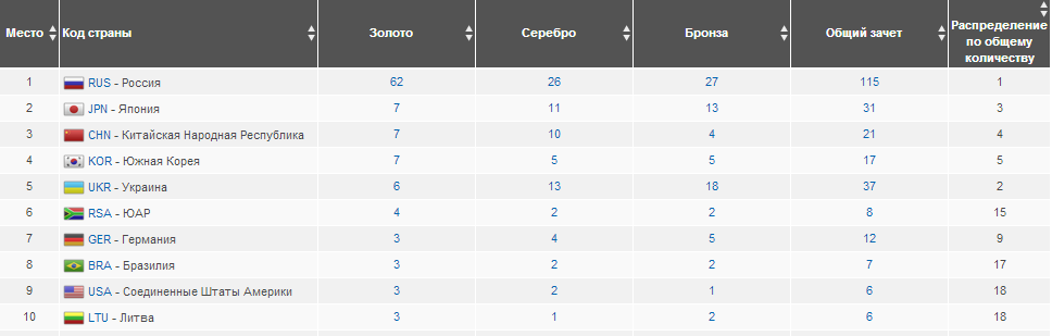 В общекомандном зачете Украина замыкает топ-5. В нашей копилке 6 золотых медали, 13 серебряных и 18 бронзовых.