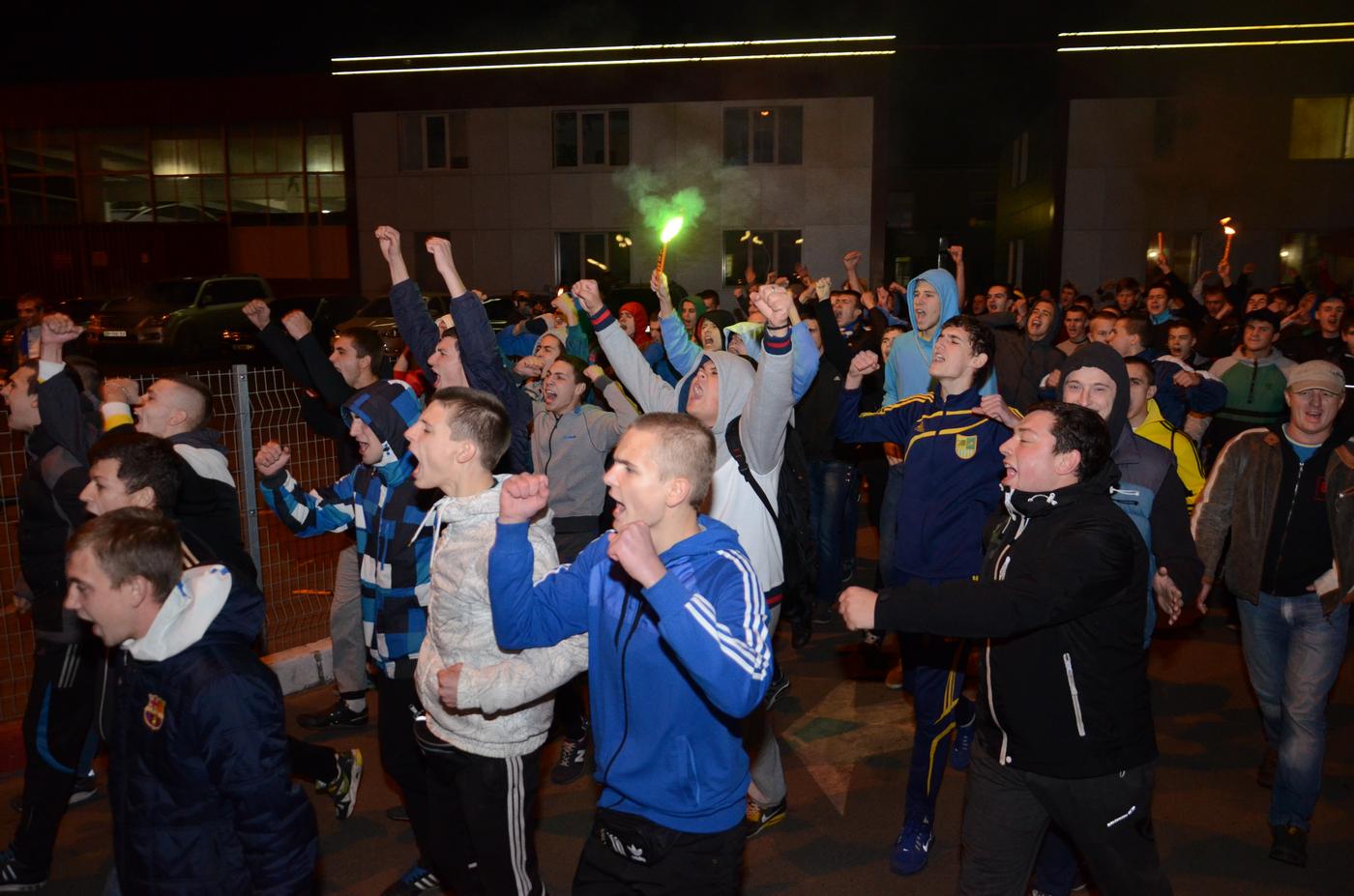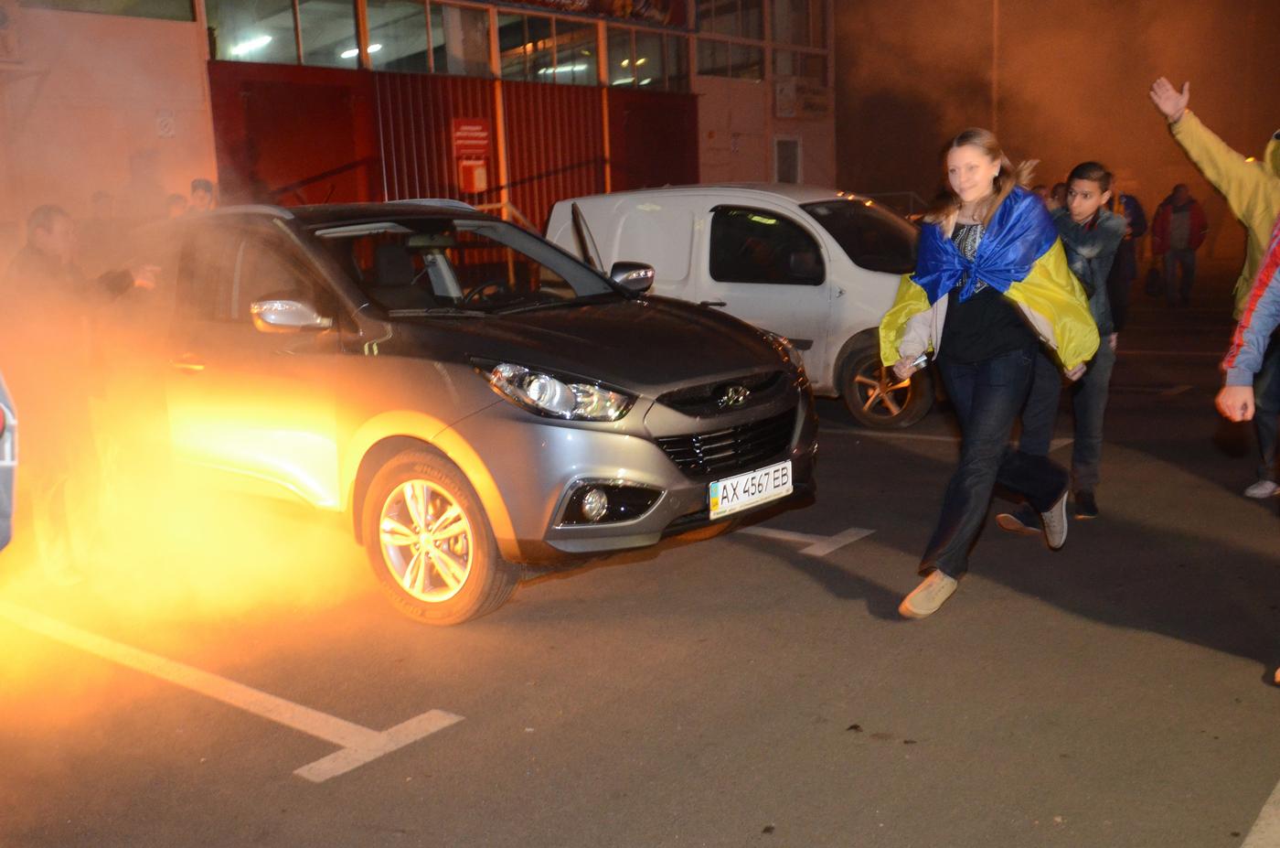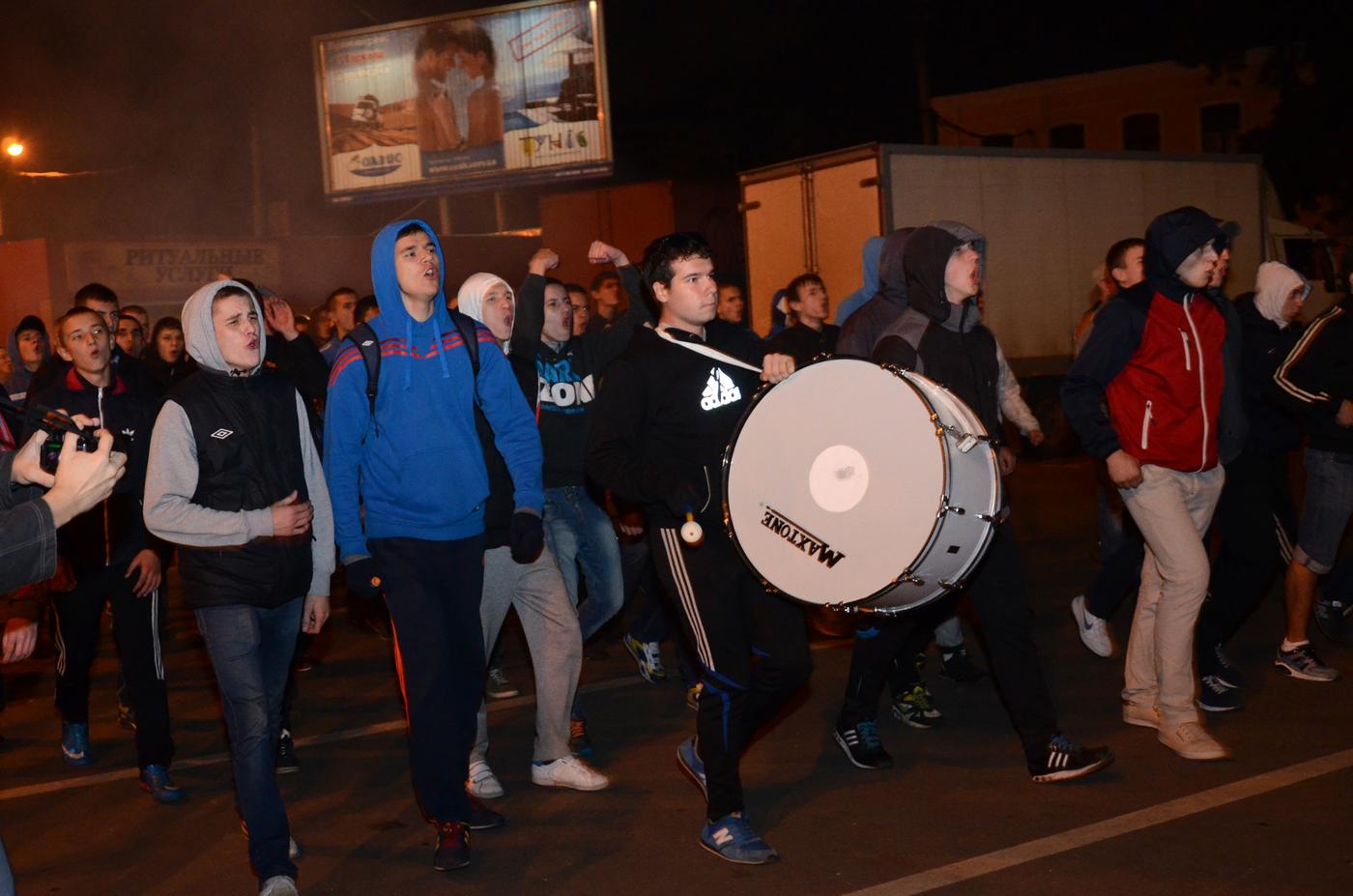 Но вот уже за пределами стадиона болельщики дали волю своей радости и устроили настоящее факельное шествие с зажженными файерами, от которых едва не пострадали автомобили на стоянке.
