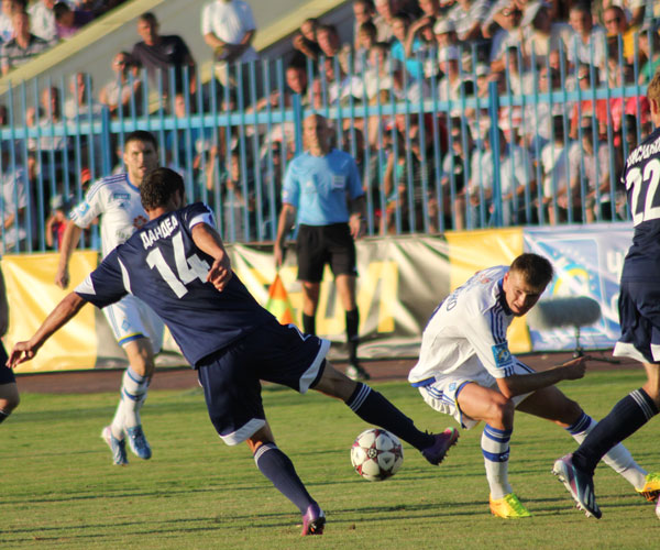 Наставник гостей Вячеслав Грозный перед матчем говорил о необходимости нивелировать разницу в классе команд. Похоже, вспомнили об этом гости ближе к 15-й минуте, заметно активизировавшись. Сначала Лысенко опасно пробил метров с 20-ти, но на месте оказался Шовковский. А на 20-й минуте после скидки назад от Трухина Никулае почти с линии штрафной расстреливал голкипера «Динамо», но тот перевел мяч на угловой.