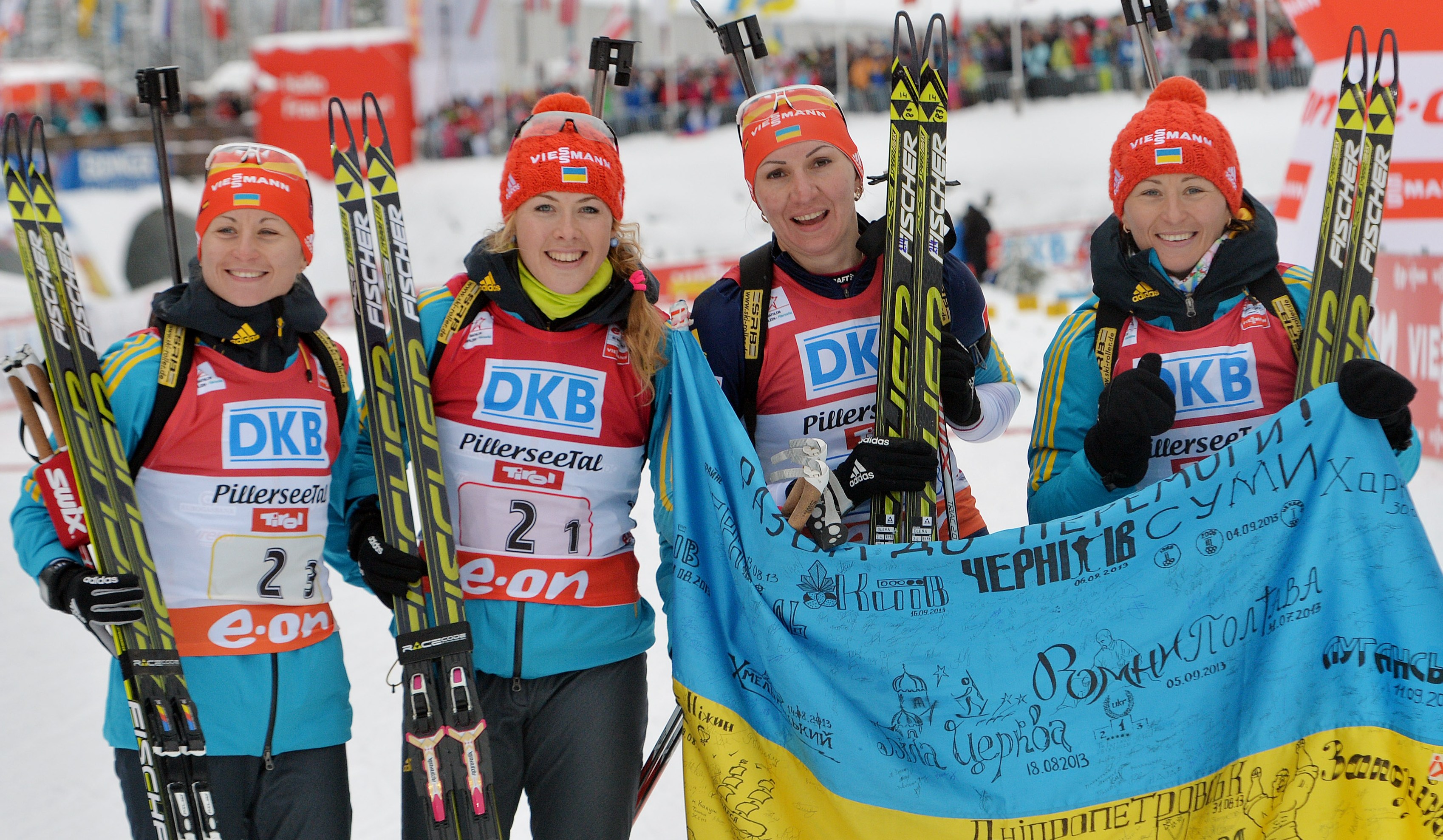 Биатлонная эстафетная команда Украины состоит из Елены Пидгрушной, Валентины и Виты Семеренко, а также Юлии Джимы. Стоит вспомнить, что в этом сезоне девочки имеют и золото, и серебро этапов Кубка мира, разделяя в зачете этой дисциплины первое место с немками. А вот в прошлом сезоне украинская четверка оказалась серебряным призером Чемпионата мира. Эти девушки чувствуют друг друга во время соревнований. Такого гармоничного квартета нет ни у одной сборной. Главное - каждая должна отработать без сбоев