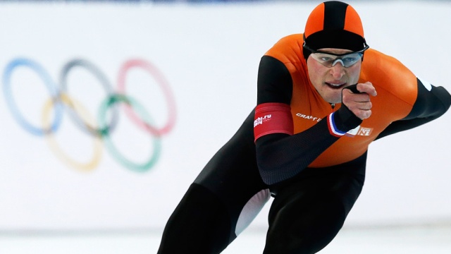 Конькобежец из Нидерландов Свен Крамер финишировал на "Адлер-арене" с результатом 6:10:76.