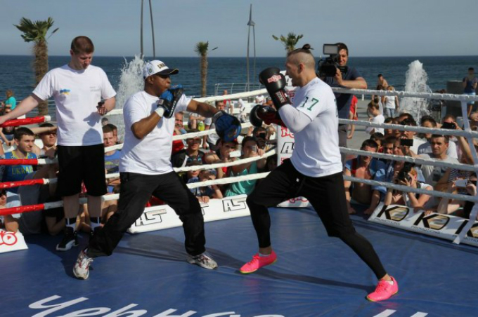 В Одессе состоялась открытая тренировка олимпийского чемпиона Александра Усика (3-0, 3 КО), который завтра проведет свой четвертый поединок на профессиональном ринге против аргентинца Сезара Дэвида Кренса (21-8, 13 КО).