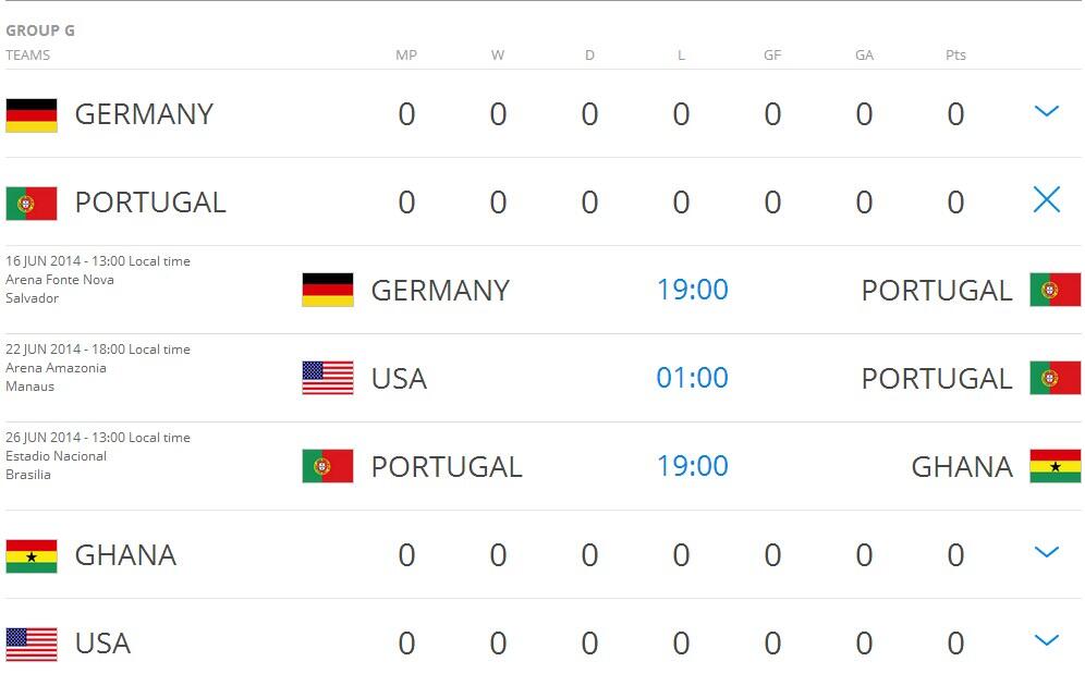 С именем Роналду на устах. Визитка сборной Португалии. ЧМ-2014В квартете G Португалия выступает с Германией, США и Ганой. 16 июня на "Арене Фонте-Нова" состоится матч против бундестим (в 19:00 по Киеву). Команда "звездно-полосатых" выйдет против португальцев 23 июня на "Амазонии"(в 01:00 по Киеву). В заключении групповой стадии встреча с "черными звездами" 26 июня на "Национальном стадионе" в столице (в 19:00 по Киеву).