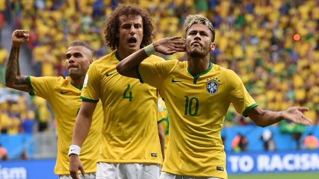 Бразилия открыла счёт уже на 17-й минуте матча, когда Неймар замкнул прострел Луиса Густаво. Камерунцы отыгрались достаточно быстро. На 26-й минуте первого тайма Жоэль Матип переправил мяч в ворота. Однако ещё до перерыва бразильцам вновь удалось выйти вперёд. Неймар совершил сольный проход и катнул мяч в противоход Итанджу, оформив, таким образом, дубль.
