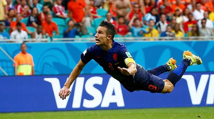 С помощью сотни нарисованных кадров и "перелистывания" удалось воссоздать зрелищный гол ван Перси и эффектный гол Родригеса.