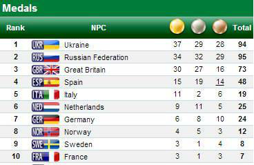 Второе место в общем зачете заняла команда России, которая завоевала на 1 медаль больше, однако у россиян на 2 «золота» меньше, нежели у украинской сборной.