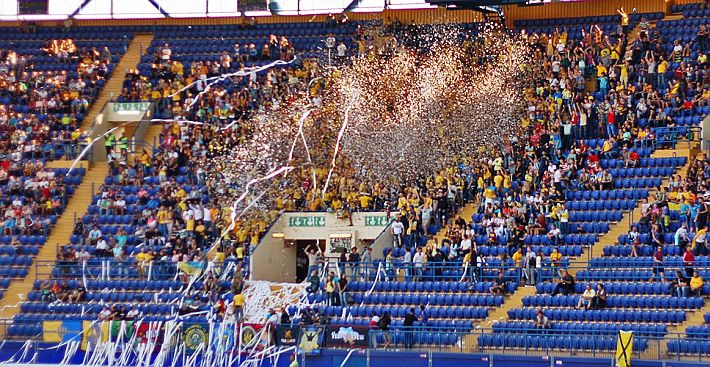 Перед матчем болельщики устроили в центре Харькова марш в поддержку бойцов украинской армии, а со стартовым свистком группа фанов эффектно выбросила в воздух конфетти.