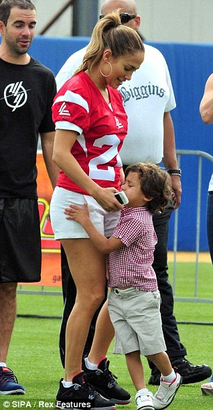 На игровое поле звезда прихватила с собой детей Эмму и Макса, молодого бойфренда Каспера Смарта и даже маму Гваделупе. При этом певица не стала отсиживаться на трибунах в качестве зрителя, а облачилась в красную футболку с номером 24 и коротенькие белые шорты и вышла на поле.
