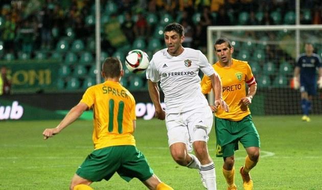 Веру в собственный успех старались демонстрировать бело-зеленые с первых минут ответного матча. Ринулись вперед сразу же хозяева, создав несколько опасных моментов у чужих ворот. Был шанс отличиться ударом головой из центра чужой штрафной у Ковпака после подачи от Турсунова, но мяч полетел чуть мимо цели. Спустя минуту уже лишь каркас ворот сыграл за гостей. В результате навеса с углового пробил головой из центра владений Волешака Арменд Даллку, но мяч лишь сотряс перекладину ворот за спиной словака.