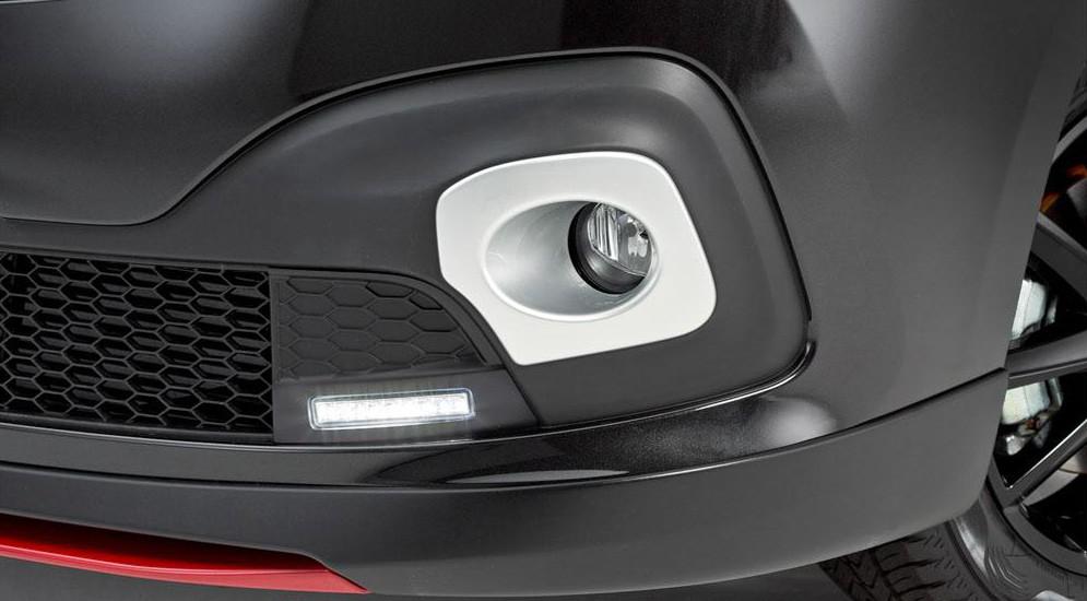 Впрочем, на этом фишки "формульного" Trafic не заканчиваются. Для того, чтобы хоть немного приблизить фургончик к гоночным болидам, на переднем бампере установили имитацию спойлера в форме переднего антикрыла, а под фирменным лого Renault - стилизацию под передний обтекатель. Вокруг передних противотуманных фар появилась окантовка из белого пластика.
