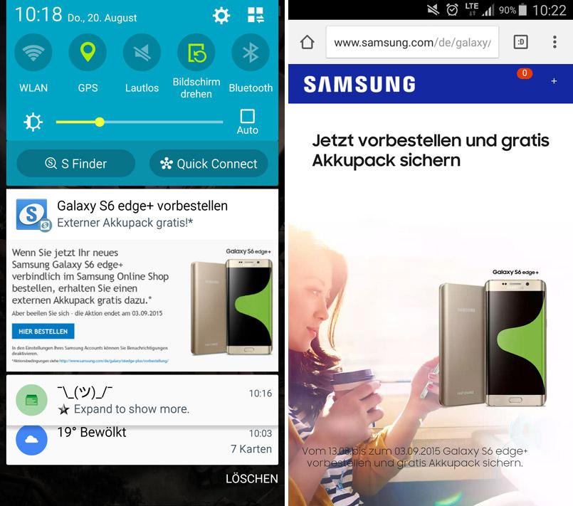 Рекламные баннеры распространяет служба Samsung Push Service, генерирующая уведомления от различных приложений, включая Samsung Pay и Samsung Link. За короткое время пользователи корейских аппаратов уже получили предложение от Samsung приобрести флагманский телефон Galaxy S6 Edge+, а также промо-анонсы телевизионных передач, спонсором которых выступила Land Rover. Причем при нажатии на последний рекламный баннер смартфон запускает приложение Peel, позволяющее установить напоминание о необходимости ее просмотра.