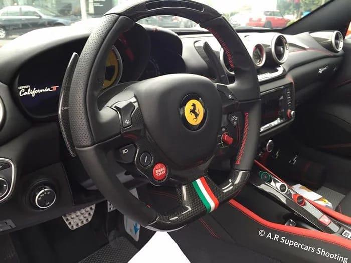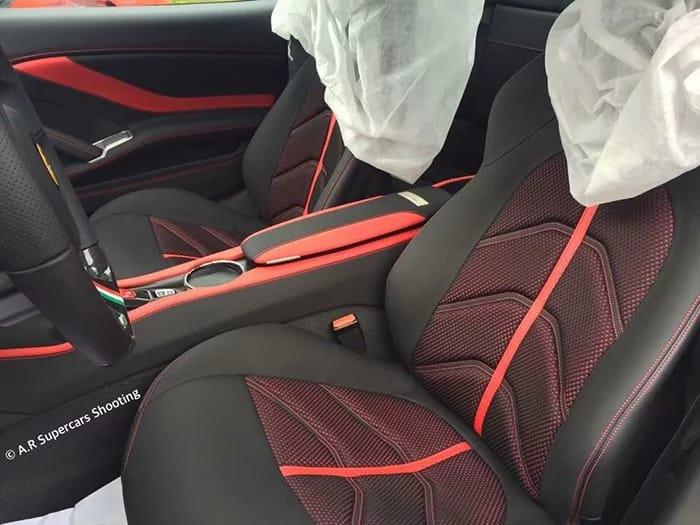 В салоне преобладает черно-красный интерьер в сочетании с цветами итальянского флага на рулевом колесе с плоским дном, а также кнопки R, Auto и Launch на центральной консоли. На стороне пассажирского сиденья имеется дополнительный огнетушитель, обернутый в черный кожаный чехол с красной строчкой.