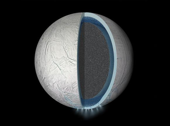 Кроме того, как отмечают ученые, шестой спутник Сатурна геологически активен. Серьезные подозрения о наличии подземной воды на Энцеладе, представляющей собой, возможно, огромное озеро или море, стали возникать еще тогда, когда «Кассини» зафиксировал и сфотографировал гейзеры водяного пара, частицы льда и простые органические молекулы, которые распылялись из разломов на южном полюсе спутника. Однако наличие изменений в гравитационном поле, на которые указывают наблюдения «Кассини», могут говорить о том, что воды под толщей льда Энцелада скрыто гораздо больше, чем раньше предполагалось.