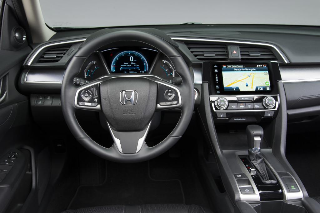 Но если внешность Honda Civic оказалась весьма неординарной, то интерьер, напротив, стал весьма традиционным. Вместо сложной многоэтажной архитектуры теперь — вполне обычный, но здорово «оспортивленный» салон. Так, например, появились широченный центральный тоннель и множество вставок «под металл», блестящих и матовых. Разумеется, для «Сивика» анонсирована новейшая мультимедийная система и множество передовых опций, вроде адаптивного круиз-контроля и автоматического торможения перед препятствиями.