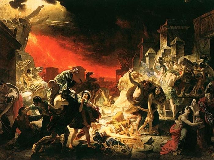 Помпеи были большим римским городом в итальянской области Кампания. 24 августа 79 года вулкан Везувий начал извергать вулканический пепел. В течение 18 часов пепел покрыл весь город у своего подножия. Затем конус вулкана разрушился, и город поглотила лавина. Она накрыла все здания, кроме самых высоких, на века сохранив под собой город. При раскопках археологи обнаруживают улицы и дома с нетронутым убранством, останки людей и животных, которые не смогли спастись от стихии.
