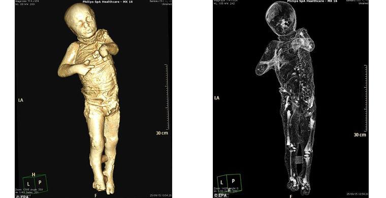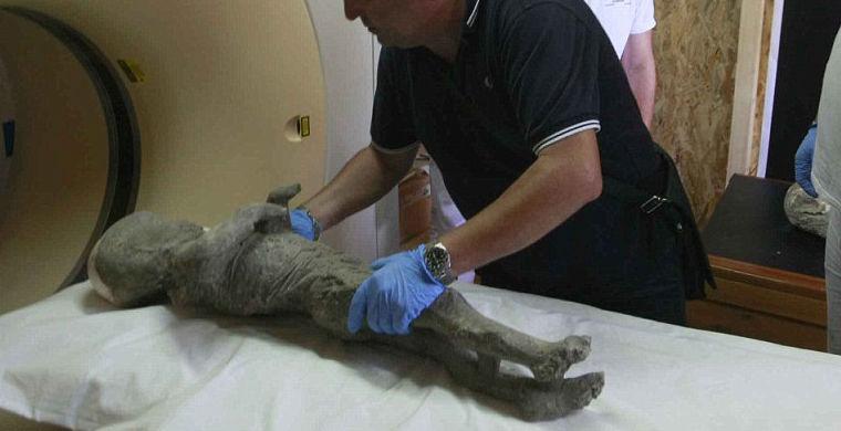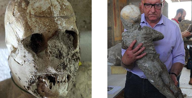 С помощью сканера ученые заглянули под гипсовый панцирь, «одевший» мальчика, и увидели его крошечный скелет и даже искривленные в испуге губы. Также археологи изучили скелет другой жертвы — как предполагается, взрослого мужчины. С помощью контрастной краски, которая имитирует мышцы и кожу, исследователи пытаются воссоздать лицо еще одного погибшего, чей череп был обнаружен, сообщает Daily Mail.