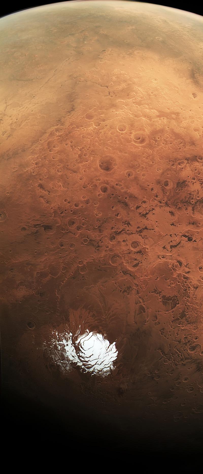 Европейское космическое агентство опубликовало фотографию Красной планеты, на которой отчётливо видна снежная шапка её Южного полюса.