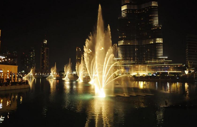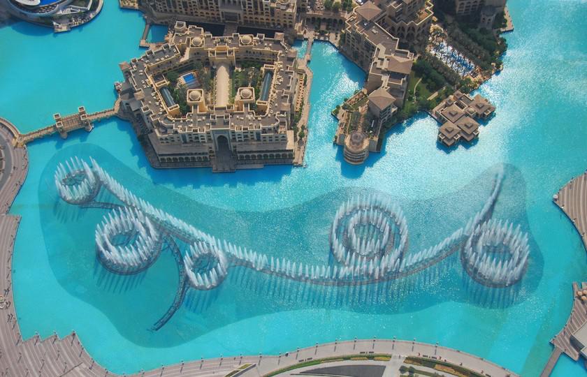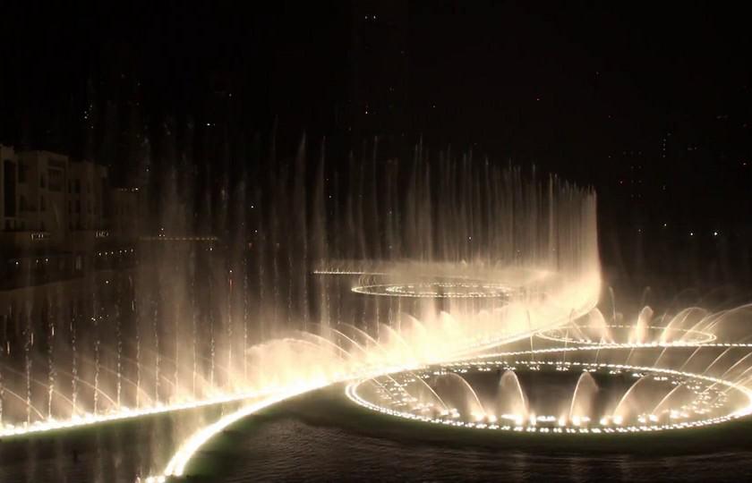 В зависимости от напора, выбрасывающего воду на высоту до 310 метров, и направления струй Dubai Fountain может продемонстрировать более тысячи различных фигурных композиций. Также он может создавать сотни ритмов под звучащую музыку, от классики до современной танцевальной.