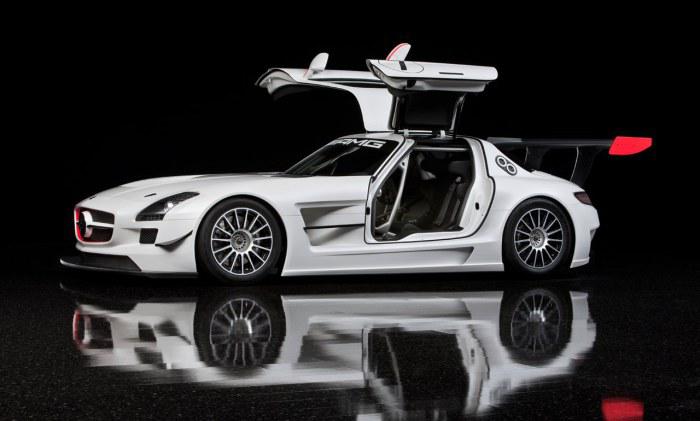 Гоночный SLS AMG GT3 отличается от всей остальной серии SL действительно небольшим весом. Машина имеет двигатель 6.2L V8 дающий 600 л.с и разгоняющий автомобиль до 100 км\ч за 3.2 секунды. Стоит автомобиль порядка 456 тысяч долларов США.
