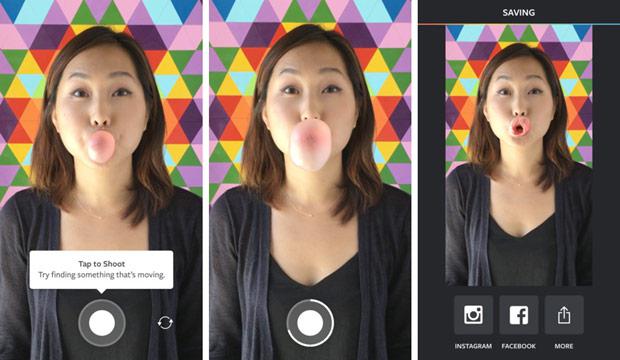 «Найдите какой-то движущийся объект (а лучше — человека!) или создайте видеоселфи при помощи фронтальной камеры. В приложении только одна кнопка. Просто коснитесь ее, и Boomerang сделает все остальное! Приложение снимет 10 фото подряд и создаст из них замечательное минивидео. Поделитесь им на Facebook и в Instagram прямо из приложения или сохраните видео в фотопленке, чтобы отправить его позже».