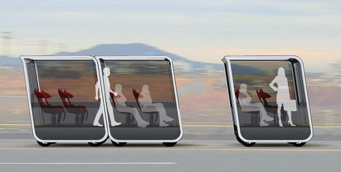 По сути, это модульный автобус, который будет составляться из нескольких персональных или относительно персональных ячеек-транспортов.Такая ячейка может принадлежать одному человеку, одной семье или несколькими людям, например работающим в одной компании или живущих по соседству.