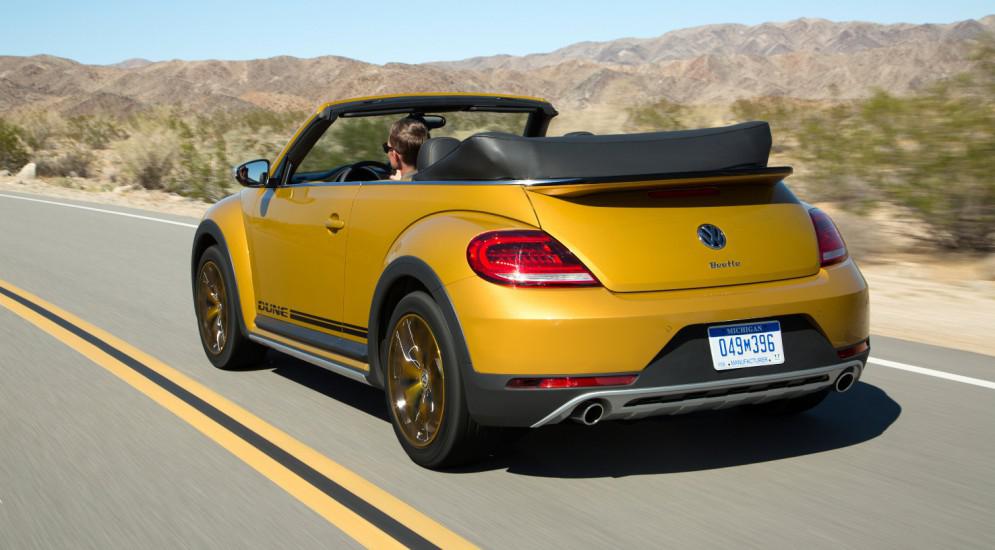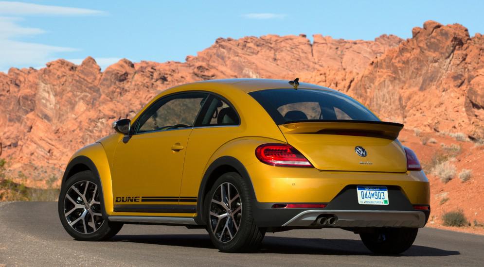VW Beetle Dune получил большой центральный воздухозаборник, обрамлённый серебряной полосой, пластиковую защиту арок, накладки на пороги. Также новинки оснастили новым задним бампером, светодиодными фонарями и спойлером.