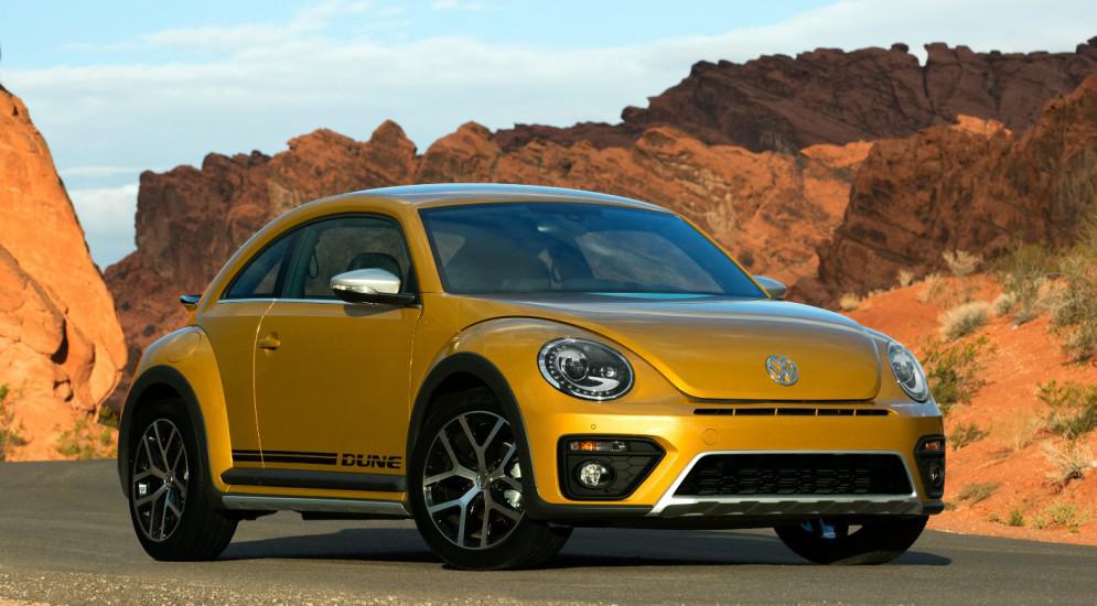 Также из особенностей нового Жука можно выделить увеличенный на 10 мм по сравнению со стандартной моделью клиренс. Для новой модификации Dune предусмотрено 9 цветов, в том числе новые металлики "Песчаная буря" и "Тёмная бронза".Читайте также: Kia опубликовала характеристики Optima нового поколения (ФОТО)Линейка двигателей включает в себя три бензиновых двигателя мощностью 105, 150 и 220 л.с. и два дизельных мотора мощностью 110 и 150 л.с. Этот перечень актуален для европейского рынка, продажи новинок на котором стартуют 19 ноября. Цена VW Beetle Dune купе - от 23 625 евро, кабриолет обойдётся минимум в 27 800 евро.В США автомобили будут предложены со 170-сильной "четвёркой" TSI объёмом 1.8 литра и шестидиапазонным "автоматом". Купить Жук в Штатах можно будет в начале следующего года.