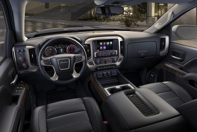 Что касается Sierra Denali Ultimate, то здесь нужно обратить внимание на суперпродвинутую оптику IntelliBeam, 22-е хромированные диски и электроподножки, а еще – отделку салона металлическими вставками и деревом, электроприводы передних сидений с 12 регулировками, подогрев и вентиляцию кресел, а также беспроводной зарядник для смартфона.