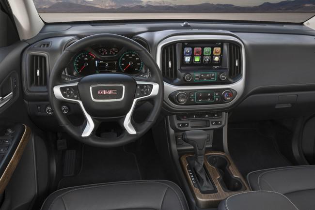 Касаемо Denali-версии “Каньона” расклад следующий: внешне среднеразмерый пикап украшают 20-дюймовые диски и много-много хрома по кругу, а салон встречает мультимедийкой IntelliLink с поддержкой Apple-устройств и гаджетов на Android, порогами с подсветкой, отделкой кожей с вышитыми бэджами спецверсии и, конечно, стилизованными ковриками. С движками относительно Sierra чуть попроще – это 3,6-литровый V6 мощностью под 310 сил и дизель Duramax в 2,8 л объема и около 185 л.с.