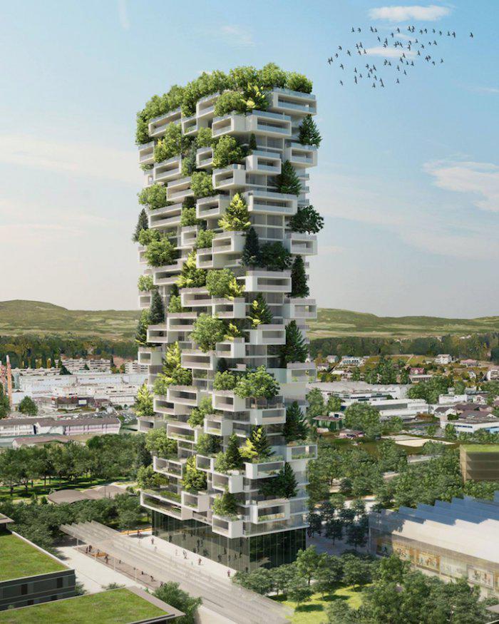 Проект планируют реализовать в швейцарском городе Лозанне. «Зеленый» небоскреб составит 117 метров в высоту. Здесь будет расти порядка сотни кедров, а также более шести тысяч кустарников и восемнадцати тысяч прочих растений. Зеленая зона небоскреба составит около трех тысяч квадратных метров.