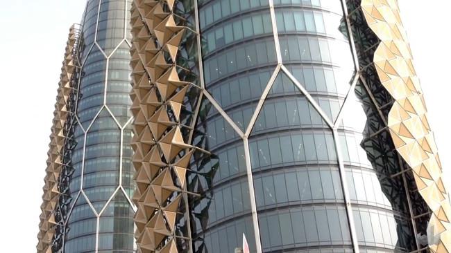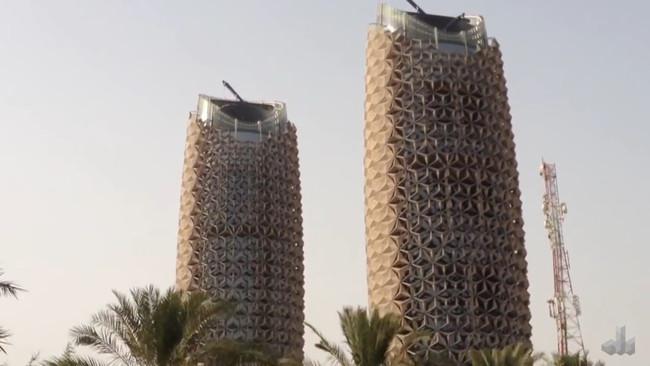 Сегодня мы расскажем тебе о двух башнях, построенных в столице Объединенных Арабских Эмиратов. Они оборудованы специальными теплозащитными экранами, которые реагируют на солнечный свет и обеспечивают комфортные условия внутри самих зданий.
