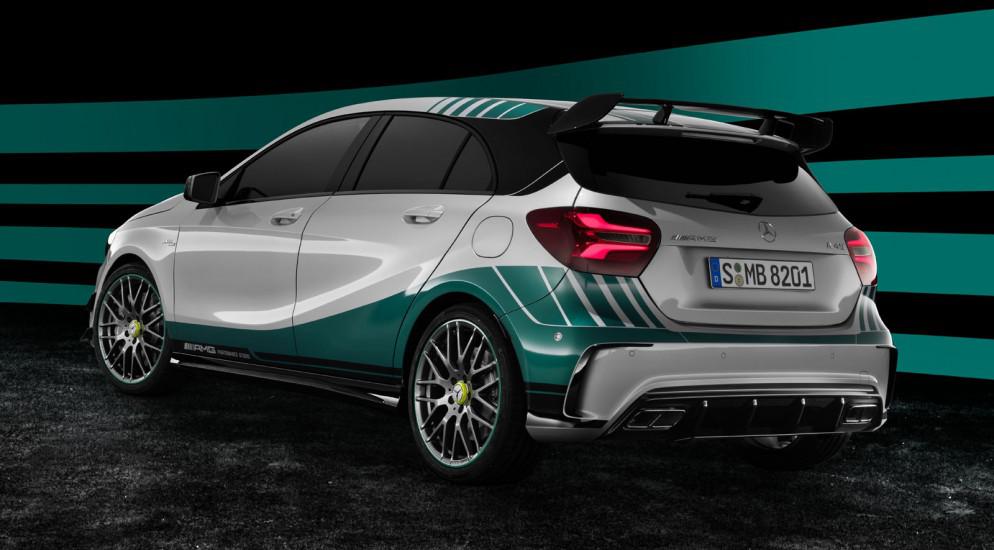 Хэтчбек получил новый окрас в стиле формулического болида F1 W06 Hybrid. Также спереди установлен увеличенный сплиттер, а на крыше - спойлер. Автомобиль посажен на большие 19-дюймовые диски. В "базе" доступны эксклюзивный пакет AMG, пакет AMG Dynamic Plus, а также спортивные сиденья с электронной настройкой.