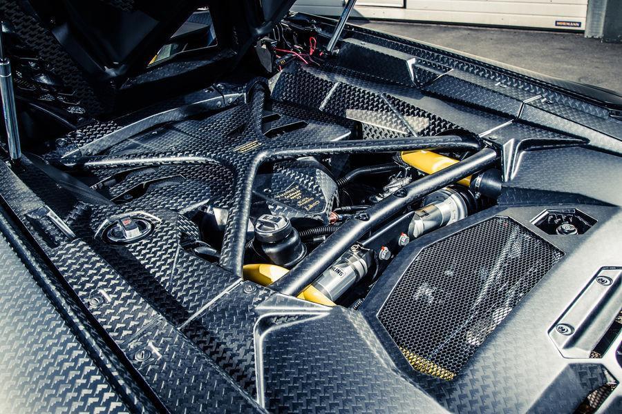 Немцы переработали также аэродинамику автомобиля, благодаря чему им удалось улучшить прижимную силу. Кроме того, был доработан передний бампер, расширены колесные арки и изменены пороги. Салон традиционно отделали кожей, алькантарой и карбоном. Проект Carbonado всегда предусматривал серьезную «прокачку» автомобиля, не стал исключением и Lamborghini Aventador Roadster, который не только снабдили фактически новым кузовом, но за счет установки двух турбокомпрессоров радикально увеличили мощность мотора.