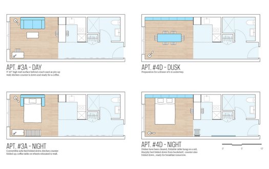 Нью-Йорк на этой неделе объявил победителя конкурса на проектирование и строительство жилого дома, состоящего из 55 однокомнатных микро-квартир студийного типа. По словам застройщика, практически половина квартир будет предложена по доступной цене. Несмотря на малую площадь, помещение будет выглядеть просторнее за счет больших окон, балконов и потолков высотой 3 метра.