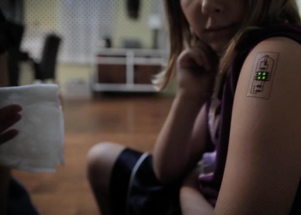 Технология под названием Tech Tats подразумевает нанесение на кожу человека временных татуировок из электропроводящей краски, которые выполняю роль проводов между электронными компонентами носимого устройства. Микросхемы и элементы питания при этом также временно приклеиваются к коже. По словам разработчиков, подобная технология может помочь создать носимое на коже устройство с функциональностью фитнес-трекера, электронного кошелька, медицинского диагностического модуля и даже носимого химического детектора для военнослужащих. О планах коммерческого использования Tech Tats ничего не сообщается.