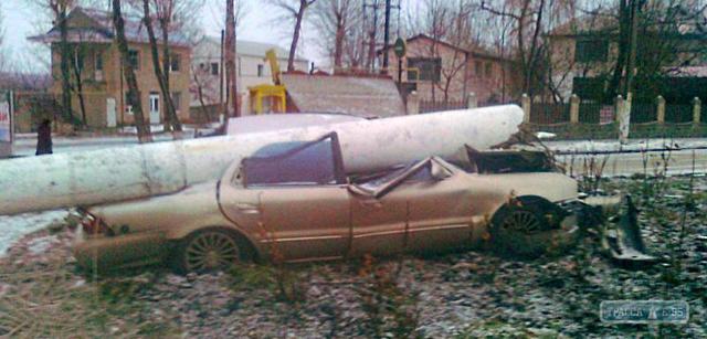 Под Одессой автомобиль сбил бетонный столб и был раздавлен (ФОТО)