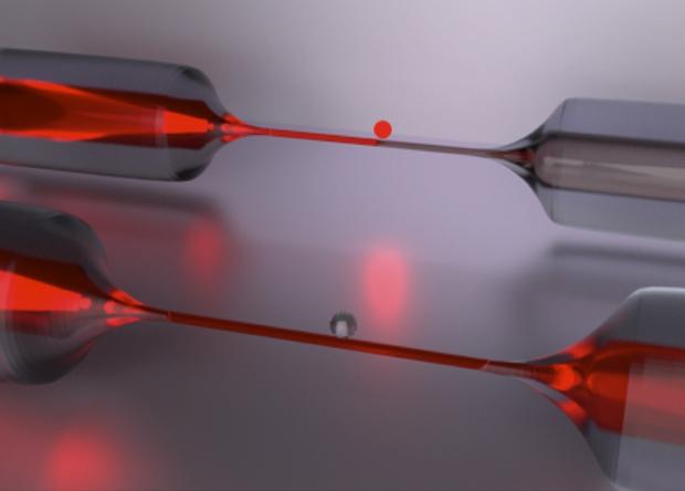Основанные на свете схемы передачи данных потенциально быстрее и экономичнее электрических. Для реализации подобных схем требуются оптические аналоги электронных диодов и транзисторов. На данный момент существует уже несколько концепций оптических диодов, однако они не способны работать с сигналами низкой интенсивности, соответствующими потокам из нескольких фотонов, обработка которых необходимы для работы оптических схем. Ранее команда из Венского технического университета проводила похожий эксперимент: ученые направляли лазер на рассеивающий объект (металлическую наночастицу или небольшое облако атомов), расположенный напротив середины узкого оптоволокна. Рассеянный свет попадал в волокно и затем распространялся в одну из сторон в зависимости от поляризации изначального излучения. Эффект основан на явлении, возникающем при распространении света по нановолокну, толщина которого меньше чем длина волны света. При таком движении спин фотонов перпендикулярен направлению распространения света, т.е. вектор электрического поля вращается вокруг оси, перпендикулярной направлению движения фотонов. Изменение направления движения приводит к изменению спина; электрическое поле распространяется за пределы оптоволокна и способно взаимодействовать с рассеивающим объектом, расположенным близко к волокну.