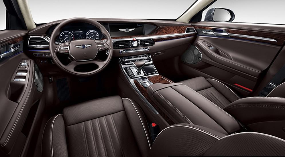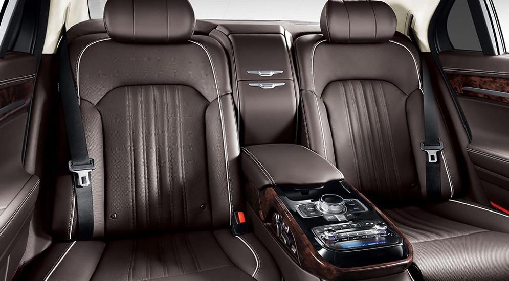 Заднеприводный Genesis G90 получил три бензиновых двигателя: «атмосферники» V6 38 и V8 5.0 мощностью 315 и 425 л. с. соответственно, а также твин-турбо мотор V6 3.3, отдача которого составляет 370 л. с. Трансмиссия одна – восьмиступенчатый «автомат». Самая мощная версия седана разгоняется с места до «сотни» за 5,7 секунды.О платформе флагмана в компании не рассказали. По предварительным данным, G90 построен на растянутой платформе нынешнего седана Дженезис, который после рестайлинга переименуют в G80.В список стандартного оборудования «корейца» вошли девять подушек безопасности, система беспроводной зарядки смартфона, климат-контроль, камера заднего вида, система помощи при парковке.Читайте также: Aston Martin построит отдельный завод для кроссовера DBX (ФОТО)В более дорогих комплектациях Genesis G90 имеются система кругового обзора, мультимедийный комплекс с экраном 12,3 дюйма, аудиосистема Lexicon, отделка салона натуральным деревом, два планшета для задних пассажиров и многое другое.За доплату покупателям G90 предложат интеллектуальный полный привод HTRAC и адаптивную подвеску Genesis Adaptive Control Suspension.
