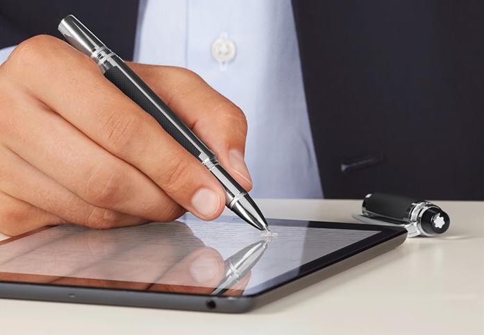 Писать статусной ручкой Montblanc на экране iPad, как на бумаге? Да, это уже возможно. Недавно появилось приложение для стилуса StarWalker Extreme ScreenWriter, которое позволяет выбрать из нескольких режимов письма на сенсорном экране. Технология стала возможна благодаря специальному силиконовому диску, который при желании можно заменить на стрежень капиллярной ручки или роллера. Но мы советуем выбрать технологичный варинат, так можно будет вести настоящие бортовые записки на своем iPad, а самые интересные рукописные наблюдения отправлять друзьям по электронной почте. ScreenWriter позволяет делать пометки и зарисовки на экране большинства мобильных устройств. Корпус и колпачок ручки выполнены из нержавеющей стали, украшены вставкой с PVD-покрытием и клипом с платиновым напылением.