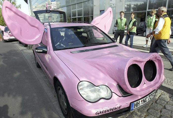 Во всём мире можно найти не один десяток свиномашинок, но одной из самых известных считается вот этот розовый Мерседес. «Гринпис» использует авто во время своих кампаний по Европе в борьбе с загрязнением окружающей среды и за права животных.